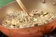 フライパンにチリメンジャコ、松の実を入れ、中火で焦がさないように空炒りする。