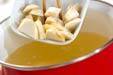 鍋にだし汁と里芋を入れて中火にかけ、煮立ったら火を弱め、里芋が柔らかくなるまで8~10分煮、ニンジン、玉ネギを加える。