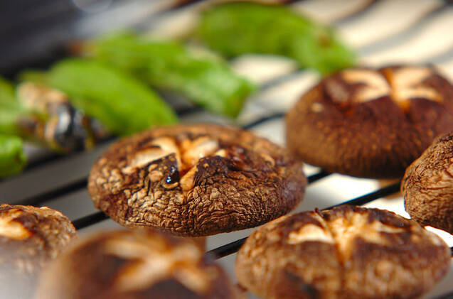 焼き網をよく熱し、中火でシイタケの両面をサッと焼き、シシトウも焼き色がつくまで焼く。