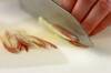 ミョウガは縦半分を薄くスライスする。大葉はせん切りにする。