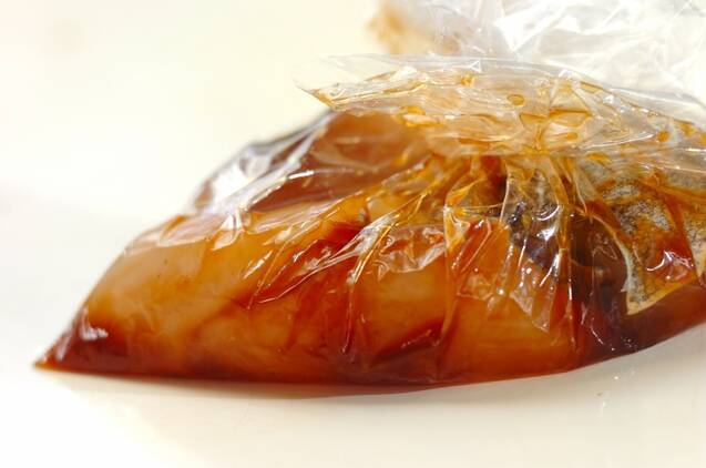 タラは骨があれば取り、ひとくち大に切り、<下味>の材料に30分程漬ける。揚げ油を170℃に予熱し始める。