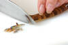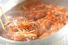 たっぷりの熱湯に分量外の塩を入れて車エビを入れ、中火で2分ゆで、ザルに上げる。エビは煮過ぎると硬くなりますので注意して下さい。