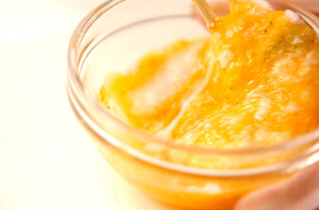 卵黄は溶いて長芋、塩コショウを混ぜ合わせる。