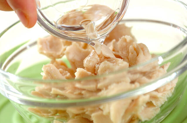 酒粕は細かくちぎり、酒をかけてふやかしておく。