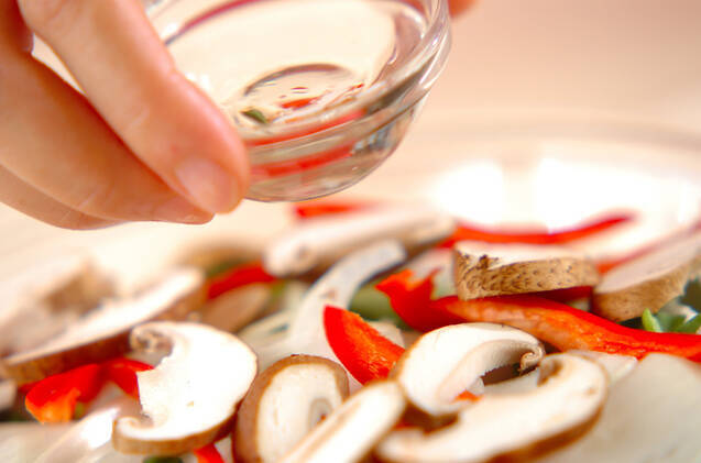 耐熱皿に生鮭を並べ、上に野菜類をのせて酒を回しかける。ラップをふんわりとし、電子レンジで4~5分加熱する。