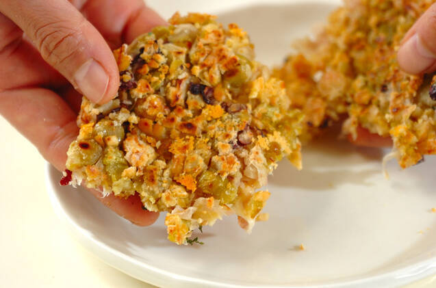 火を止めて少しかたくなるまで冷まし、ひっくり返して反対側も4~5分焼く。薄く焼き色がついたら火を止め、冷ます。食べやすい大きさに分け、器に盛る。