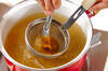 アサリは殻と殻をこすり合わせるように水洗いして、ザルに上げておく。
