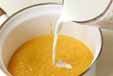 ミキサーにかけ、網を通して鍋に戻し、牛乳を加えてひと煮立ちさせ、塩コショウで味を整える。