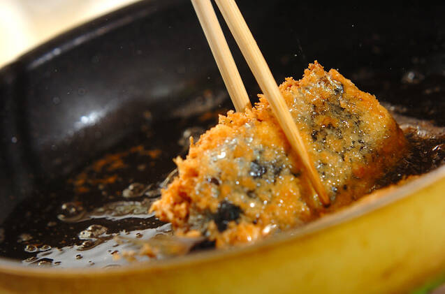 <衣>の残りの小麦粉、卵、水を混ぜ合わせ、(2)のイワシをくぐらせてパン粉をつける。(1)の揚げ油に入れて色よく揚げ、油をきる。器にキャベツと盛り合わせ、レモンを添える。お好みでウスターソースをかけて下さい。