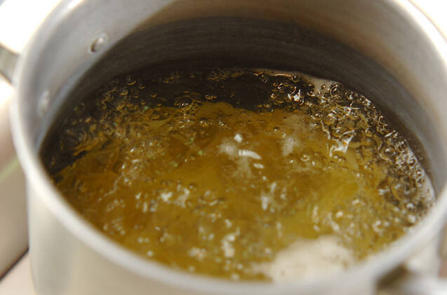 スパゲティーはたっぷりの熱湯に塩を入れ、袋の指定時間通りにゆでる。