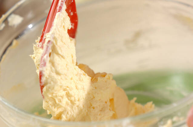 大さじ1杯程度の粉類を振るい入れ、ゴムベラで混ぜる。