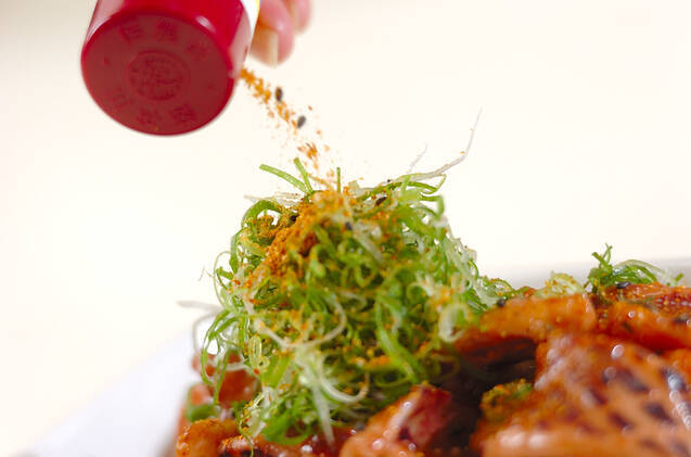 器に盛って刻みネギを散らし、七味唐辛子を振る。