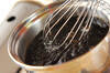鍋にエスプレッソコーヒーとグラニュー糖を入れて火にかけ、沸騰直前まで温める。