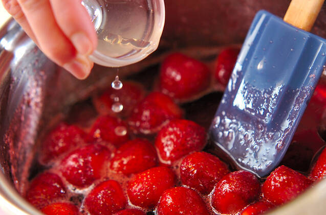 鍋に(2)を入れて強火にかけ、アクが出たら取る。5分程煮たら火から外し、レモン汁を加える。分量外のプレーンヨーグルトやフロマージュブランなどにかける。