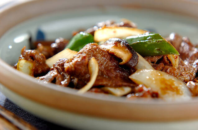 牛肉とキノコのソース炒め