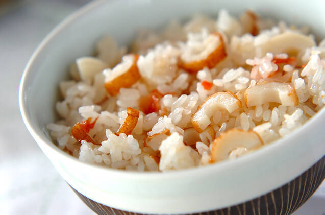 ちくわと梅干しをご飯と一緒に炊いた、サッパリとした一品。梅干しは抗菌作用があるので、お弁当にもオススメです。