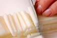 かつお節をのせ、しょうゆを掛け、プチトマト、もろみを添える。長芋にかつお節をからめながらいただきます。