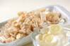 白ネギは幅1cmに切る。