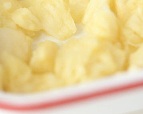 切り取ったパイナップルは、小さめの一口大に切り、バットに広げて冷凍庫で凍らせる。
