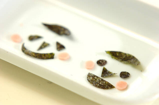 焼きのりとハムはそれぞれハサミでお好みの顔のパーツの形に切る。