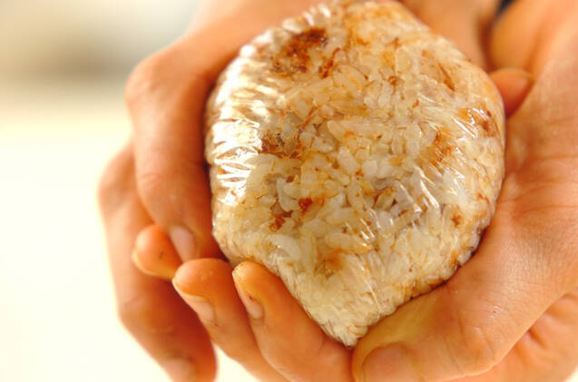 <ゆで卵おにぎり>を作る。ご飯に塩を混ぜ、しょうゆと合わせたかつお節を混ぜ合わせる。ラップでゆで卵を包むようににぎる。