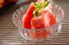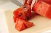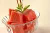 スイカを冷凍庫で凍らせ、器に盛ってミントの葉を飾る。