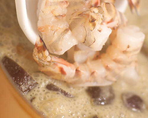 他の野菜、エビの胴を加え、砂糖、ナンプラーで味を整える。