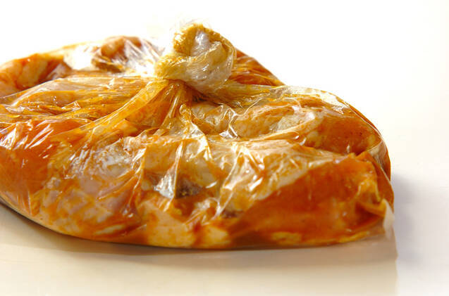 鶏手羽元はフォークで全体に穴を開け、<下味>の材料をもみ込み、冷蔵庫で半日以上置く。(ヒント)調理時間に置く時間は含みません。