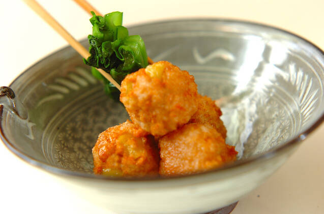 器に(2)と小松菜を盛り合わせ、麺つゆを注ぐ。