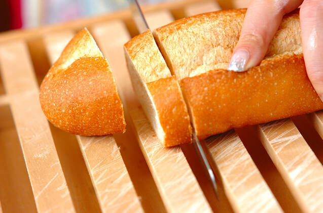 バゲットは厚さ8mmに切り、軽くトーストしておく。