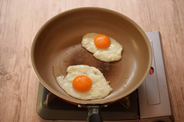 フライパンを中火にかけ、サラダ油小さじ1を流す。油が馴染んだら、卵を割り入れ、好みの焼加減で焼く。皿にとり、塩少々をふる。