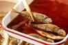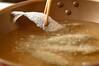 最後に強火にしてカリッと仕上げ、あつあつを<南蛮ダレ>に漬ける。タレが全体にからまるように返す。