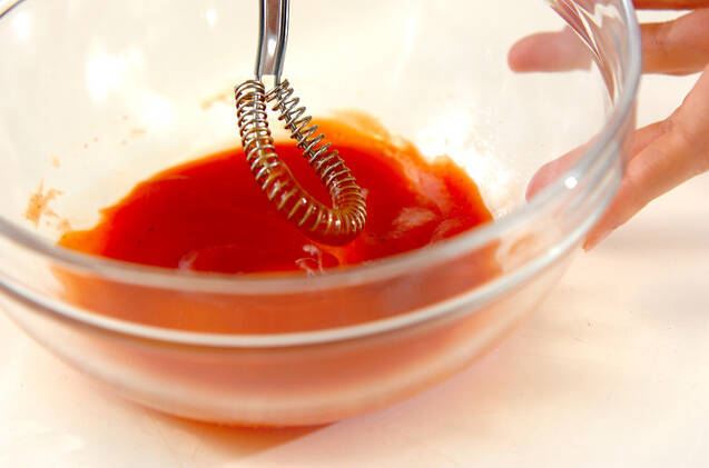 ボウルで<ドレッシング>の材料を混ぜ合わせる。