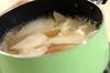 鍋にカブ、ベーコン、玉ネギ、固形スープの素、水を入れて火にかける。