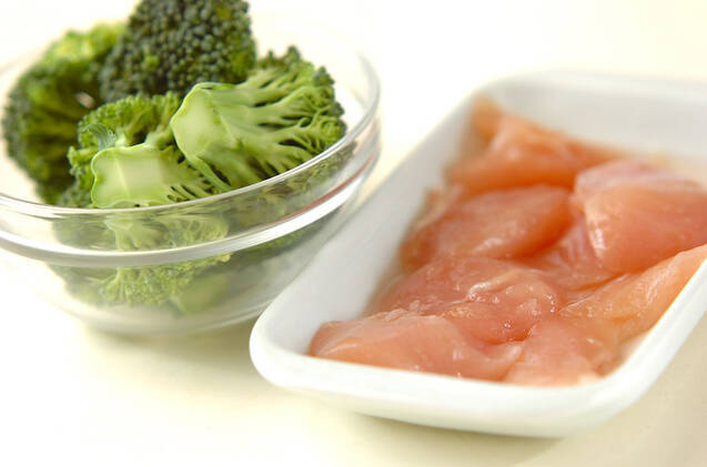 鶏ささ身はひとくち大の削ぎ切りにし、酒をからめて水分がなくなったら、砂糖、塩をからめる。ブロッコリーは小房に分ける。揚げ油を170℃に予熱し始める。