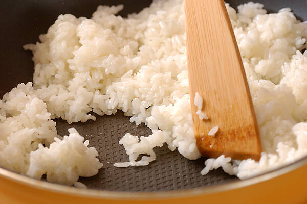 フライパンにサラダ油を強火で熱し、ご飯を炒め、油がまわれば1を加えて手早く炒め合わせる。