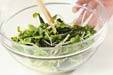 ボウルに<合わせダレ>を混ぜ合わせ、ワカメを貝われ菜をサッと和える。