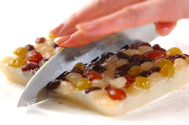 表面が固まっていたら常温で冷まし、バットから取り出し、食べやすい大きさに切り分ける。