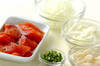 鮭と野菜を黒酢に漬けた、さっぱり肴に冷酒を添えて。