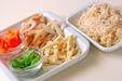 ニンジンは皮をむき、3cmの長さのせん切りにする。