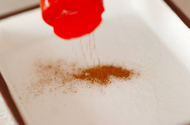 バットに<シナモンシュガー>の材料を混ぜ合わせておく。