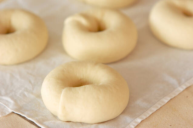 オーブン皿に乾いた布巾を敷いて成形した生地をのせ、表面が乾かないようにして、温かいところ(35℃くらい)で30~40分発酵させる。