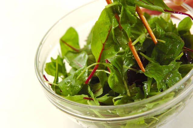 ボウルにベビーリーフを入れ、<塩レモンドレッシング>の半量を加えて和える。