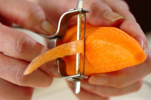 ニンジンは皮をむき、ピーラーでリボン状にする。ハムはせん切りにする。ツナは油をきっておく。