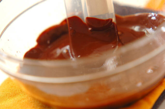 チョコレートはザックリ刻んで耐熱ボウルに入れ、ラップをかけずに電子レンジで2~3分加熱し、途中1~2回混ぜる。電子レンジは600Wを使用しています。