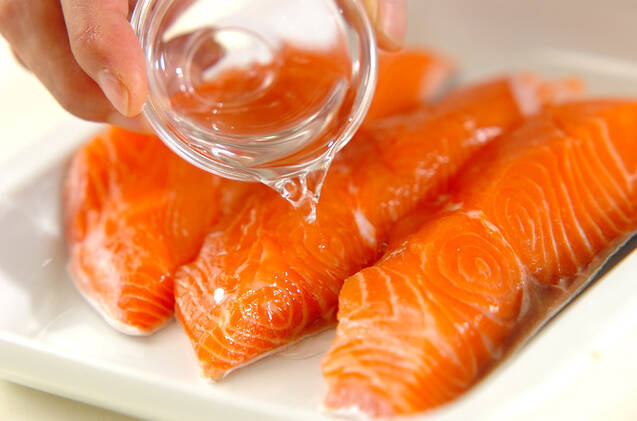 耐熱皿に生鮭をのせ、酒をかけてラップをし、電子レンジで2~3分加熱する。粗熱が取れたら皮と骨を取り、ほぐす。電子レンジは600Wを使用しています。