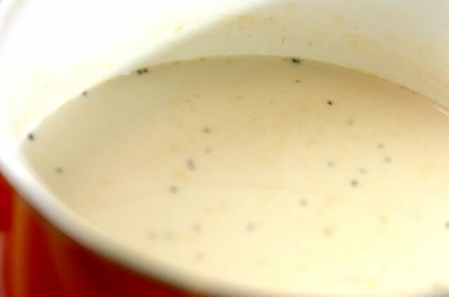 柔らかくなったらマッシャーなどでつぶし、牛乳を加えて温め、塩、粗びき黒コショウで味を調える。