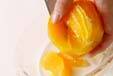 オレンジ、グレープフルーツは外の皮をむき、中の薄皮から1房ずつ実を取り出す。(オレンジ果汁、グレープフルーツ果汁も一緒に残しておいて下さい)