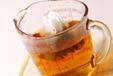 <紅茶シロップ>を作る。サーバーに砂糖を入れて熱湯を加える。紅茶のティーパックを入れ上下に動かして濃いめの紅茶液を出し、たっぷり氷を入れた容器に入れる。(氷を合わせて800mlくらいです)