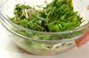 ボウルに<ゴマドレッシング>の材料を混ぜ合わせ、(1)のレンコンと水菜を加えて和え、器に盛る。